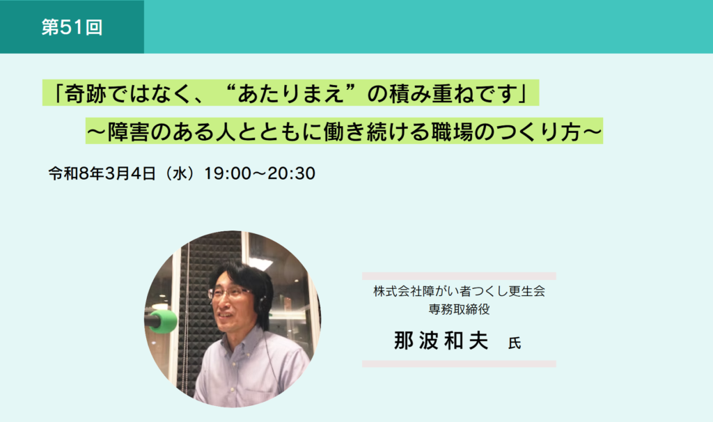 第51回「奇跡ではなく、“あたりまえ”の積み重ねです」 〜障害のある人とともに働き続ける職場のつくり方〜